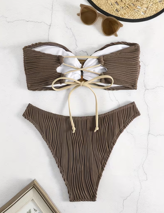 Bikini color chocolate con hebilla marca Shein nueva. Vedetina , tiro alto.