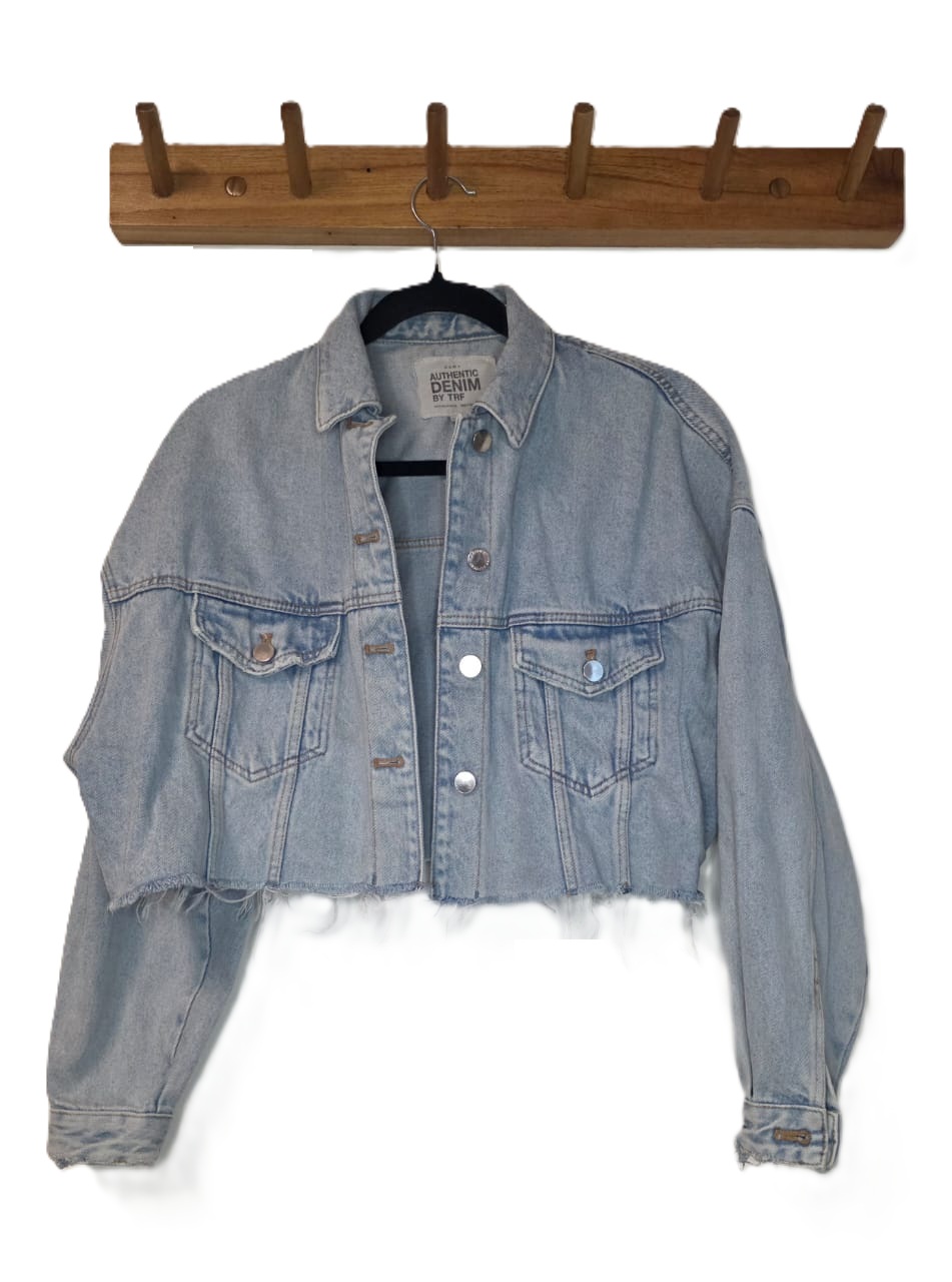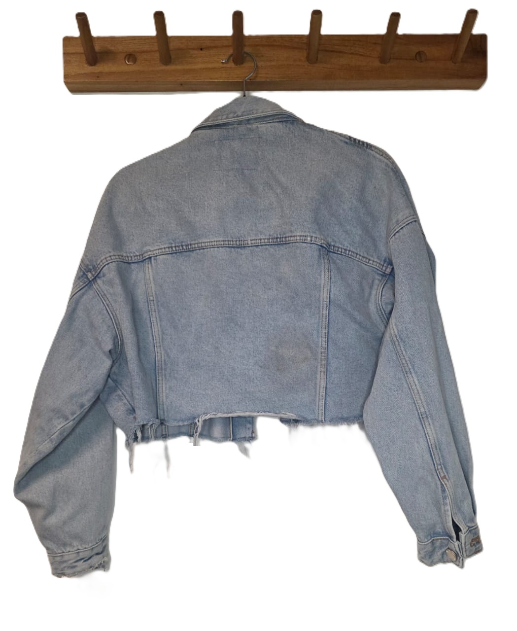 Campera corta/suelta marca Zara usada con detalle color en espalda.