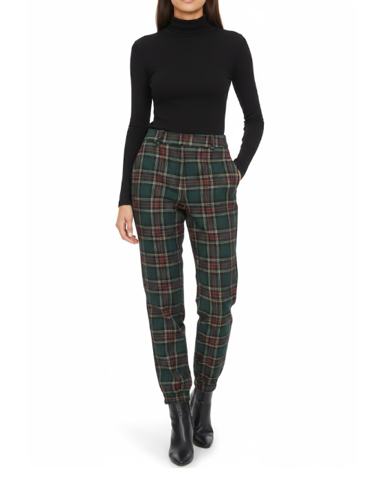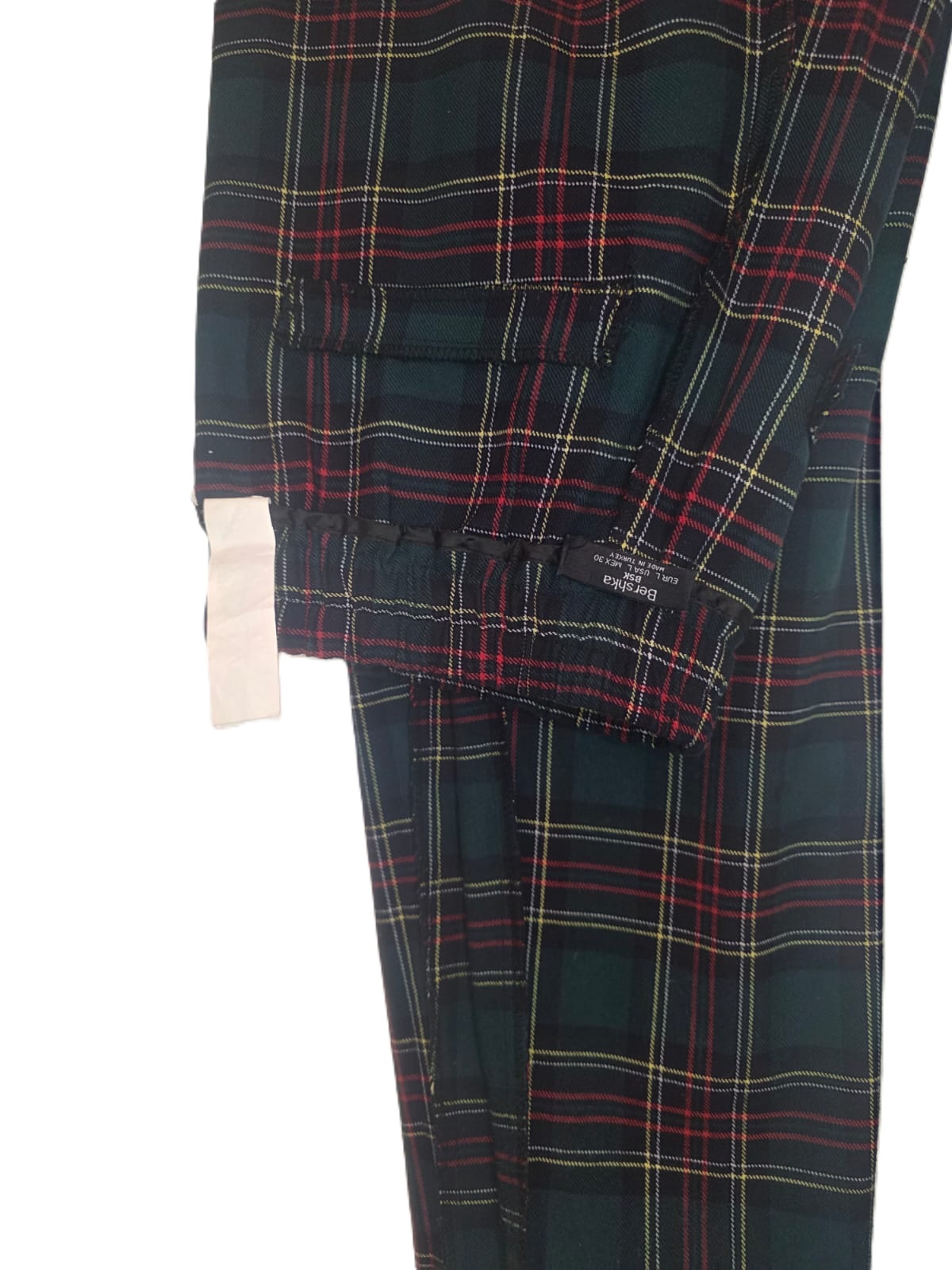 Pantalón usado de vestir escoces verde marca Bershka. De calce recto y estructura sastrera, estiliza la figura y aporta un look elegante con personalidad.