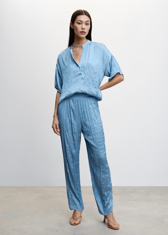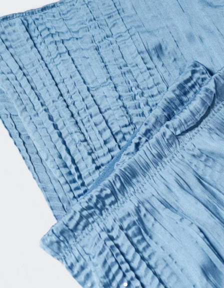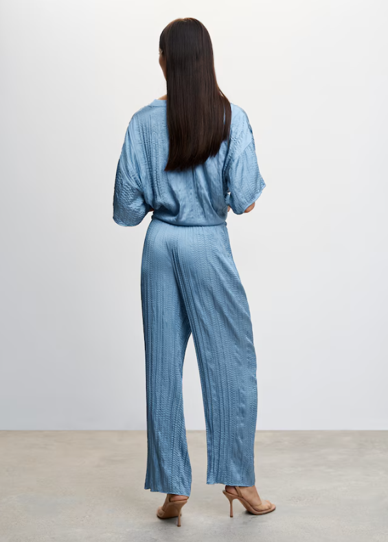Pantalón NUEVO con etiqueta. Tejido satinado. Tejido plisado. Diseño palazzo. Cintura con goma elástica. Sin cierre. Total look.