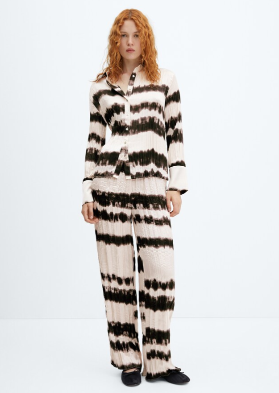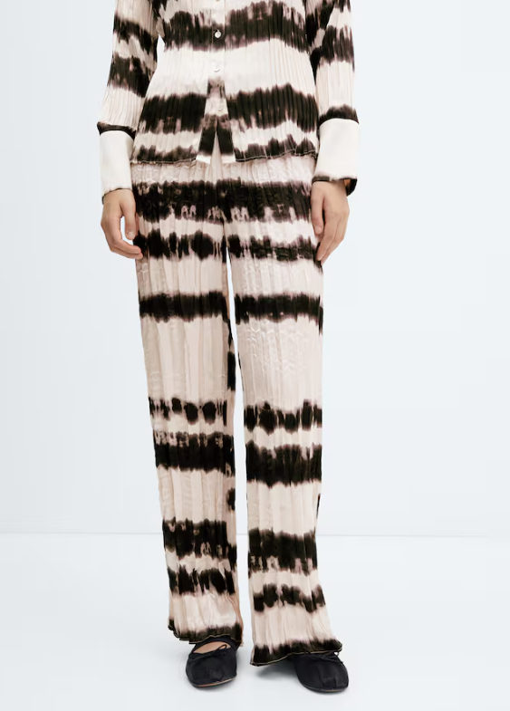 Pantalón NUEVO con etiqueta. Tejido plisado. Tejido satinado. Tejido fluido. Estampado tie-dye. Diseño recto. Diseño largo. Cintura elástica. Total look. Looks de oficina.