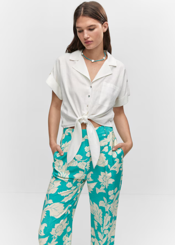 Pantalón NUEVO con etiqueta. Tejido fluido. Diseño recto. Diseño largo. Tiro alto. Estampado tropical. Trabillas. Dos bolsillos laterales. Cierre oculto de botón, gancho y cremallera. Detalle de pinzas.