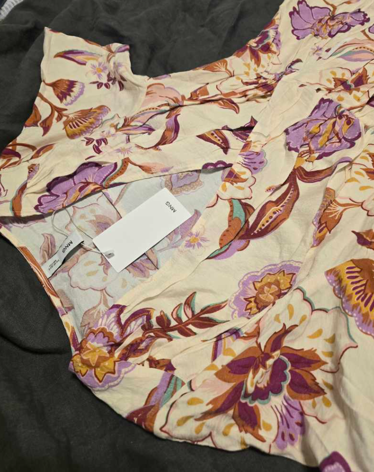 Vestido corto MANGO nuevo con etiqueta. Tejido fluido. Diseño de envolturas. Diseño corto. Escote cruzado. Manga corta. Cinturilla elástica.