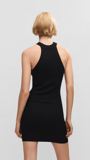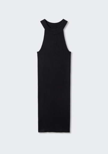 Vestido MANGO negro nuevo con etiqueta . Tejido de punto fino. Diseño ajustado. Diseño corto. Cuello halter. Sin mangas. Sin cerrar.