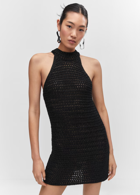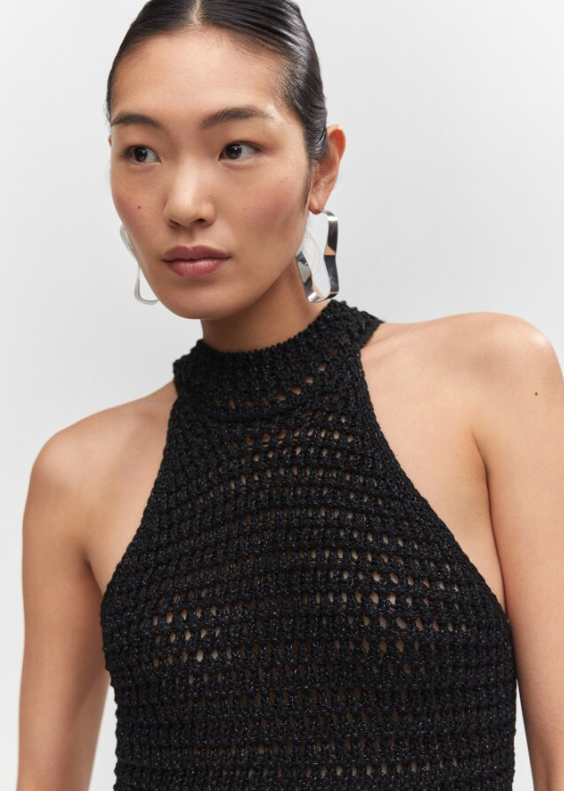 Vestido NUEVO con etiqueta. Tejido de punto. Tejido de lúrex. Diseño entallado. Diseño corto. Cuello halter. Sin cierre. Festival Season.